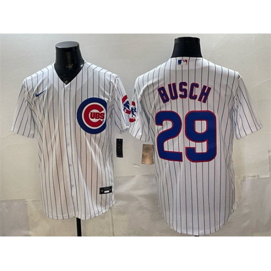Home>MLB>Chicago Cubs>Men>Men Chicago Cubs 29 Michael Busch White Cool Base Stitched Baseball Jersey