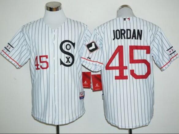 Men Chicago White Sox #45 Michael Jordan White Stips Jersey