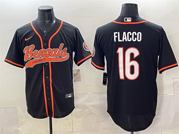 Men Cincinnati Bengals 16 Joe Flacco Black With Patch Cool Base Stitched Baseball Jersey