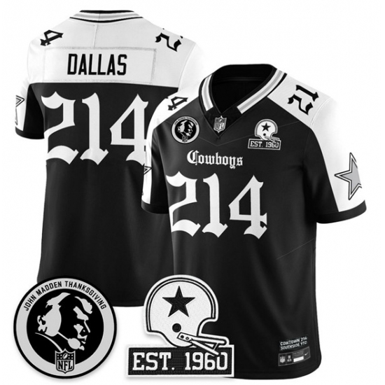 Men Dallas Cowboys 214 Dallas Black White 2025 F U S E With John Madden Patch 26 Established In 1960 Patch Vapor Limited Stitched Football Jersey