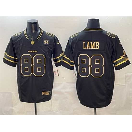Home>NFL>Dallas Cowboys>Men>Men Dallas Cowboys 88 CeeDee Lamb Black Gold 2025 F U S E 94 Marshawn Kneeland Memorial Patch Vapor Limited Stitched Football Jersey