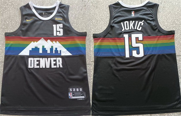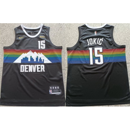 Men Denver Nuggets 15 Nikola Joki u0107 Black Stitched Basketball Jersey