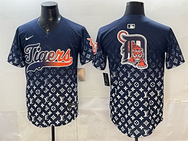 Home>MLB>Detroit Tigers>Men>Men Detroit Tigers Team Big Logo Navy With Patch Vapor Premier Limited Stitched Baseball Jersey