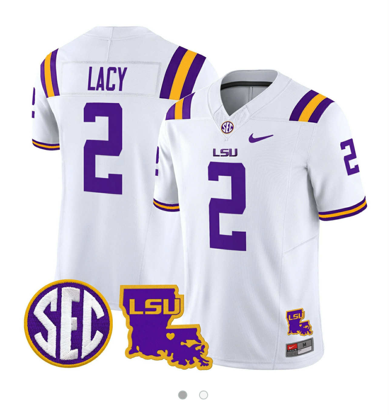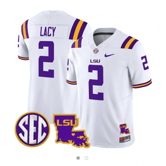 Men LSU Tigers Kyren Lacy #2 White Stitched NCAA Jersey