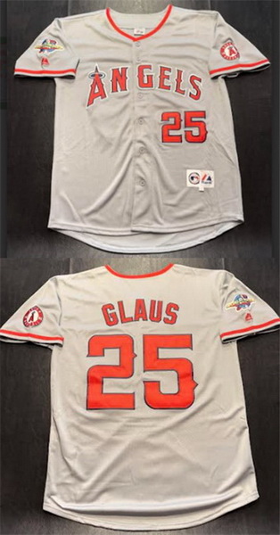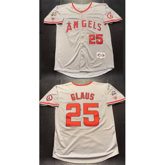 Home>MLB>Los Angeles Angels>Men>Men Los Angeles Angels 25 Troy Glaus Grey With 2002 World Series Patch Stitched Baseball Jersey