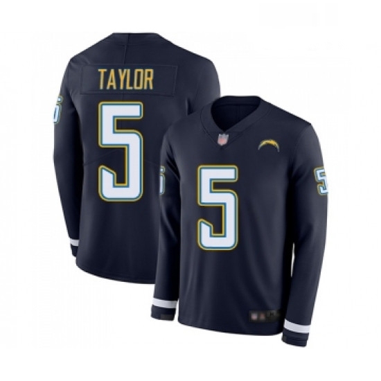 Home>NFL>Los Angeles Chargers>Men>Men Los Angeles Chargers 5 Tyrod Taylor Limited Navy Blue Therma Long Sleeve Football Jersey