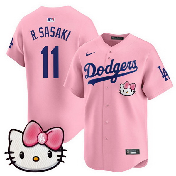 Men Los Angeles Dodgers 11 Roki Sasaki Pink 2025 Hello Kitty Vapor Limited Stitched Baseball Jersey