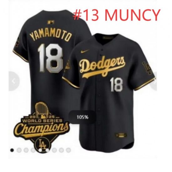 Men Los Angeles Dodgers 13 Max Muncy Black 2025 World Series Champions Patch Cool Base Stitched Baseball Jersey