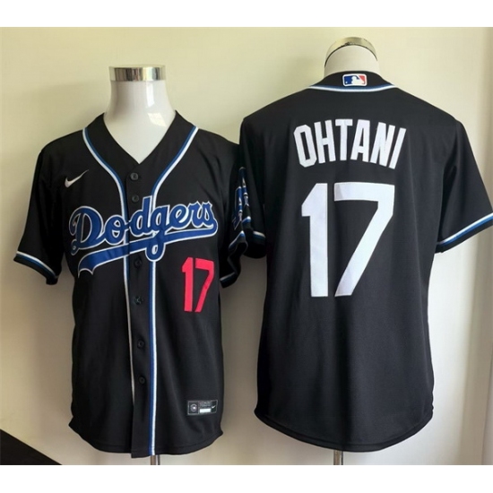 Home>MLB>Los Angeles Dodgers>Men>Men Los Angeles Dodgers 17 Shohei Ohtani Black Cool Base Stitched Baseball Jersey