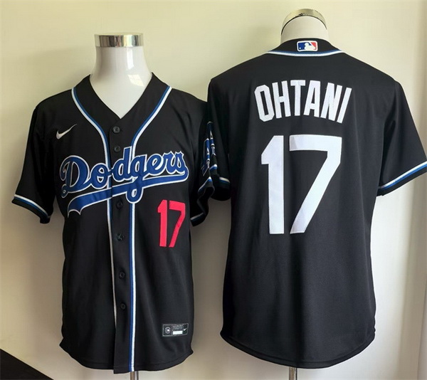 Men Los Angeles Dodgers 17 Shohei Ohtani Black Cool Base Stitched Baseball Jersey
