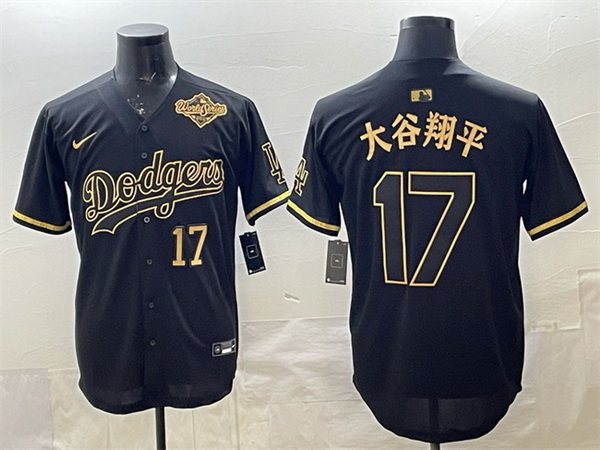 Men Los Angeles Dodgers 17 Shohei Ohtani Black Gold 2025 World Series Patch Limited Stitched Baseball Jersey