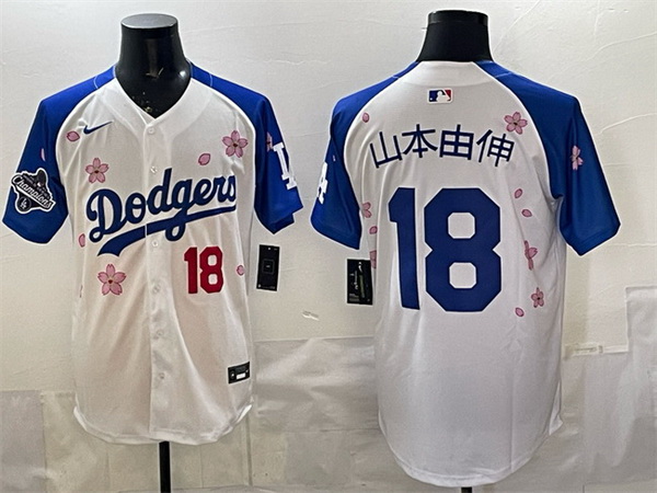 Men Los Angeles Dodgers 18 Yoshinobu Yamamoto White Royal 2025 World Series Champions Patch Tokyo Series Limited Stitched Baseball Jersey