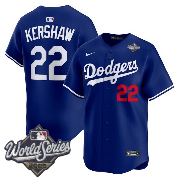 Men Los Angeles Dodgers 22 Clayton Kershaw 2025 World Series Cool Base Stitched Baseball Jersey Blue