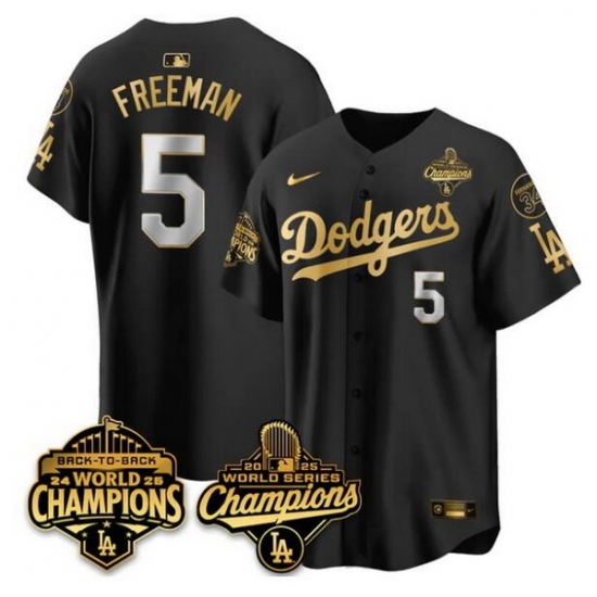 Men Los Angeles Dodgers 5 Freddie Freeman Black Gold 2025 World Series Champions Back to Back With No 34 Patch Limited Stitched Baseball Jersey