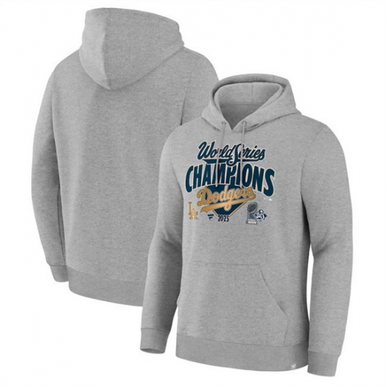 Home>Hoodie T Shirt>MLB Hoodie>Los Angeles Dodgers>Men>Men Los Angeles Dodgers Grey 2025 World Series Champions Locker Room Hoodie