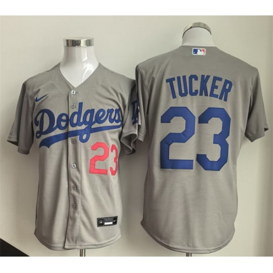 Men Los Angeles Dodgers Kyle Tucker Grey Cool Base Limited Stitched Baseball Jersey