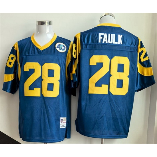 Men Los Angeles Rams 28 Marshall Faulk Royal Throwback Stitched Football Jersey
