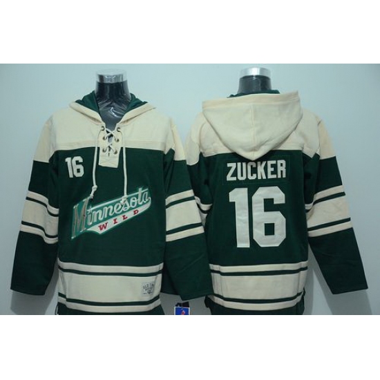 Men Minnesota Wild 16 Jason Zucker Green Sawyer Hooded Sweatshirt Stitched NHL Jersey