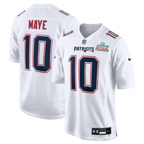 Men New England Patriots 10 Drake Maye White 2025 Super Bowl LX Patch Tundra Fashion Stitched Game Jersey