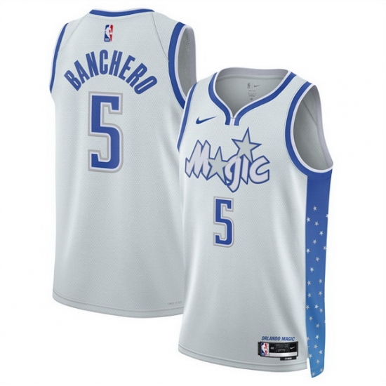 Home>NBA>Orlando Magic>Men>Men Orlando Magic 5 Paolo Banchero Silver 2025 26 City Edition Stitched Basketball Jersey