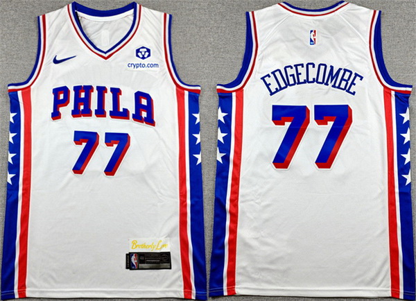 Men Philadelphia 76ers 77 V J Edgecombe White Association Edition Stitched Stitched Jersey