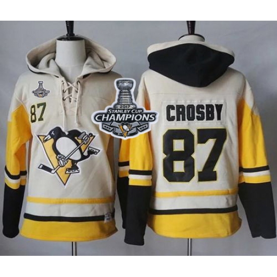 Home>Hoodie T Shirt>NHL Hoodies>Pittsburgh Penguins>Men Pittsburgh Penguins 87 Sidney Crosby Cream Gold Sawyer Hooded Sweatshirt 2017 Stanley Cup Finals Champions Stitched NHL Jersey