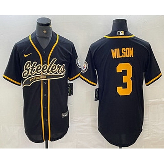 Men Pittsburgh Steelers 3 Russell Wilson Black With Patch Cool Base Stitched Baseball Jersey