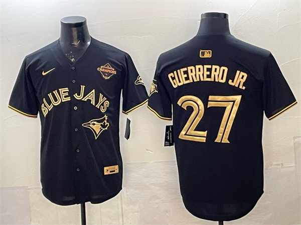 Home>MLB>Toronto Blue Jays>Men>Men Toronto Blue Jays 27 Vladimir Guerrero Jr Black Gold 2025 American League Champions Limited Stitched Baseball Jersey