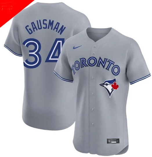 Men Toronto Blue Jays 34 Kevin Gausman Gray Cool Base Stitched Baseball Jersey