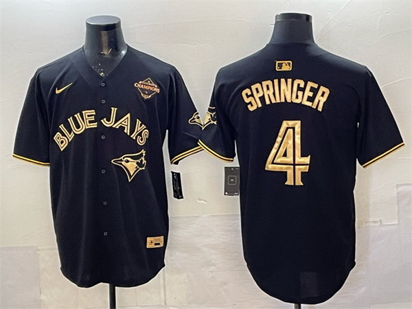 Home>MLB>Toronto Blue Jays>Men>Men Toronto Blue Jays 4 George Springer Black Gold 2025 American League Champions Limited Stitched Baseball Jersey