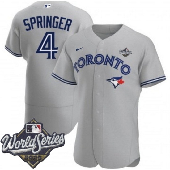 Home>MLB>2025 World Series>Toronto Blue Jays>Men Toronto Blue Jays 4 George Springer Grey Flex Base Stitched Jerse