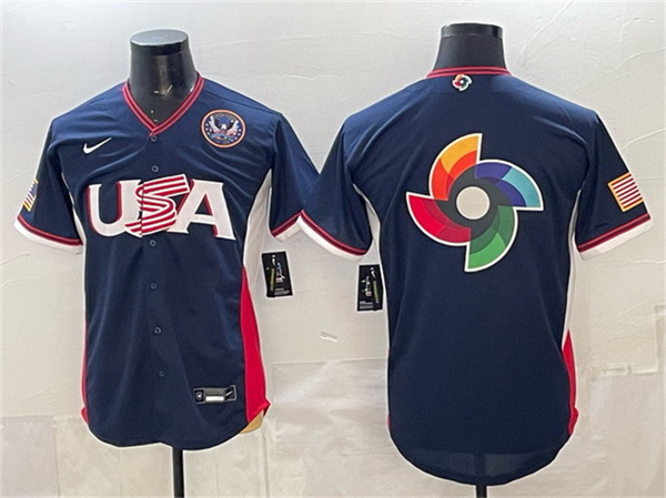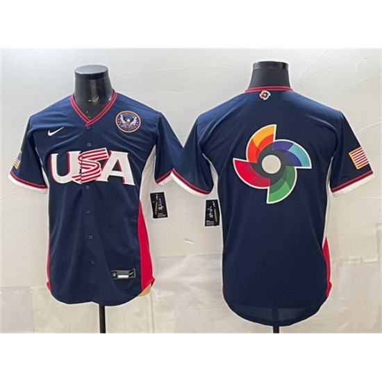 Men USA Baseball Team Big Logo Navy 2026 World Baseball Classic United States 250th Anniversary Patch Road Stadium Stitched Jersey