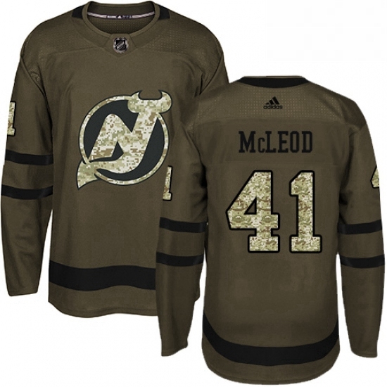 Home>NHL>New Jersey Devils>Men>Mens Adidas New Jersey Devils 41 Michael McLeod Authentic Green Salute to Service NHL Jersey