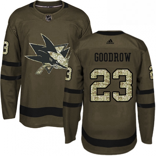 Home>NHL>San Jose Sharks>Men>Mens Adidas San Jose Sharks 23 Barclay Goodrow Premier Green Salute to Service NHL Jersey