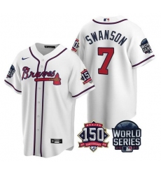 Men's Cream Atlanta Braves #7 Dansby Swanson 2021 World Series Champions With 150th Anniversary Flex Base Stitched Jersey