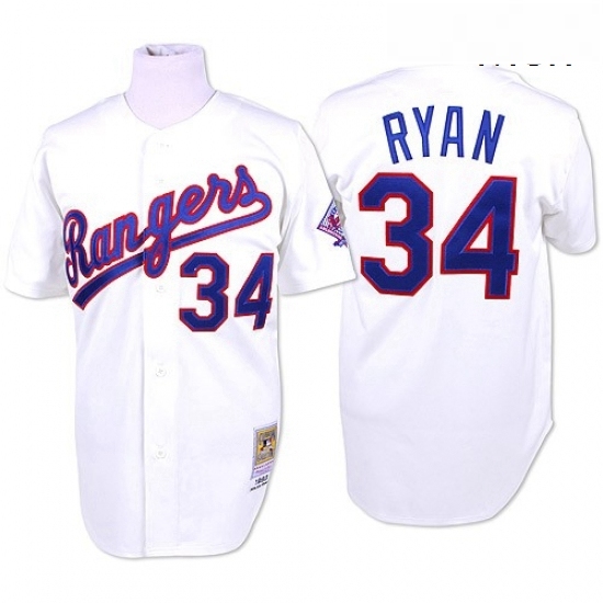 Mens Mitchell and Ness Texas Rangers 34 Nolan Ryan Authentic White Throwback MLB Jersey