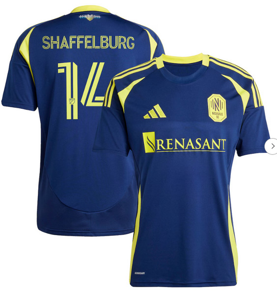 Mens Nashville SC Jacob Shaffelburg adidas Navy 2025 The Heart of Nashville Kit Replica Player Jersey