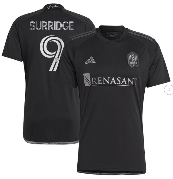Mens Nashville SC Sam Surridge adidas Black 2023 Man In Black Kit Replica Player Jersey