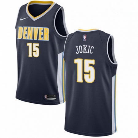 Mens Nike Denver Nuggets 15 Nikola Jokic Authentic Navy Blue Road NBA Jersey Icon Edition