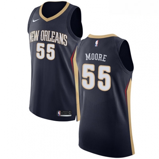 Mens Nike New Orleans Pelicans 55 ETwaun Moore Authentic Navy Blue Road NBA Jersey Icon Edition