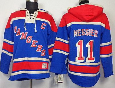 New York Rangers 11 Mark Messier Blue Lace-Up Jersey Hoodies