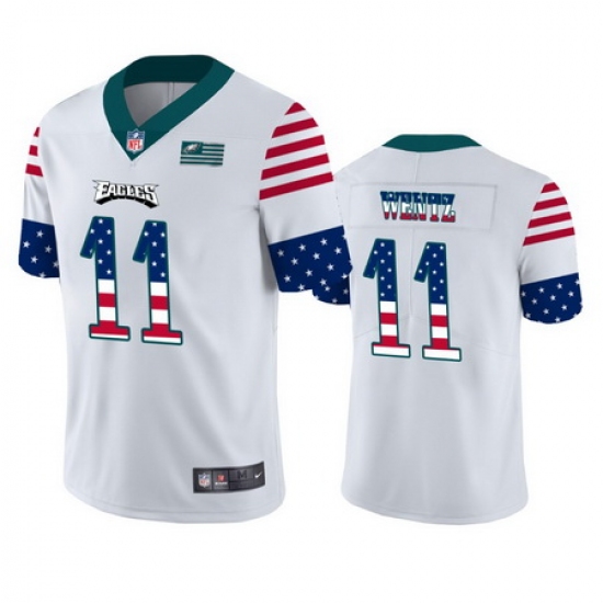 Home>NFL>Philadelphia Eagles>Men>Nike Eagles 11 Carson Wentz White USA Flag Fashion Limited Jersey