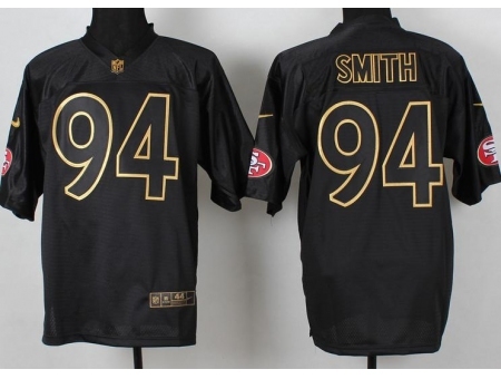 Nike San Francisco 49ers 94 Justin Smith Black Elite PRO Gold Lettering Fashion NFL Jersey
