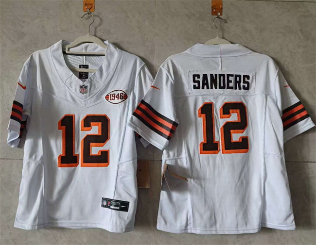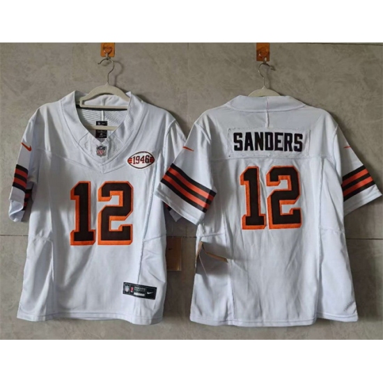 Women Cleveland Browns 12 Shedeur Sanders White 2025 Draft 1946 Collection F U S E Stitched Jersey