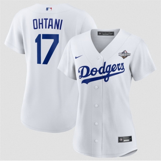 Women Los Angeles Dodgers 17 Shohei Ohtani White 2025 World Series Home Cool Base Stitched Baseball Jersey