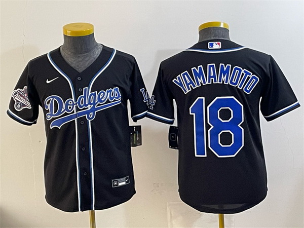 Home>MLB>Los Angeles Dodgers>Women>Women Los Angeles Dodgers 18 Yoshinobu Yamamoto Black Fashion 2025 World Series Champions Cool Base Stitched Baseball Jersey