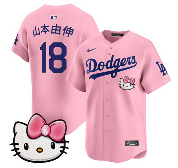 Home>MLB>Los Angeles Dodgers>Women>Women Los Angeles Dodgers 18 Yoshinobu Yamamoto Pink 2025 Hello Kitty Vapor Limited Stitched Baseball Jersey