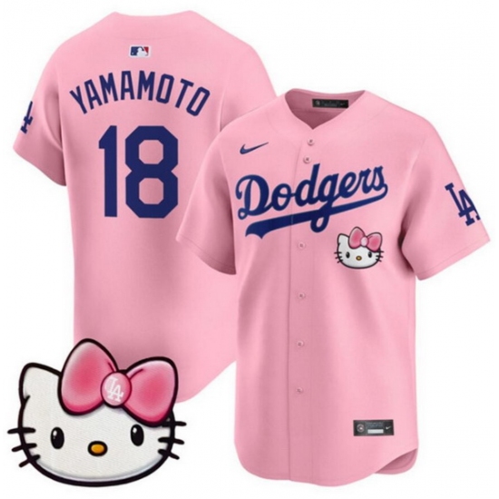 Women Los Angeles Dodgers 18 Yoshinobu Yamamoto Pink 2025 Hello Kitty Vapor Limited Stitched Baseball Jersey
