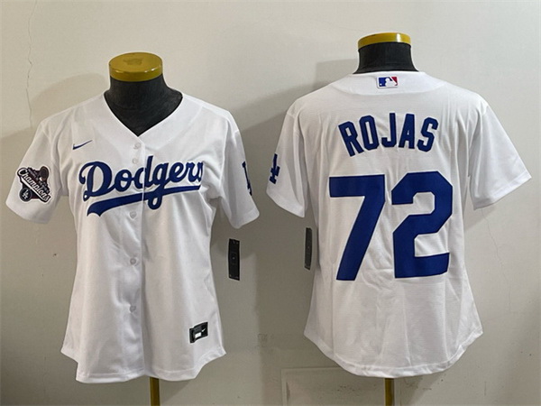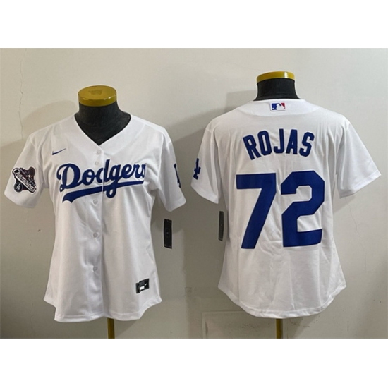 Home>MLB>Los Angeles Dodgers>Women>Women Los Angeles Dodgers 72 Miguel Rojas White 2025 World Series Champions Home Cool Base Stitched Baseball Jersey