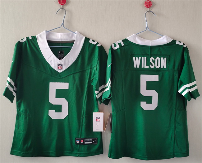 Women New York Jets 5 Garrett Wilson Green F U S E Vapor Stitched Jersey
